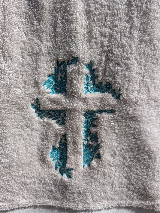 Heirloom Cross Embroidered Towel – Custom Colours & Personalisation Available