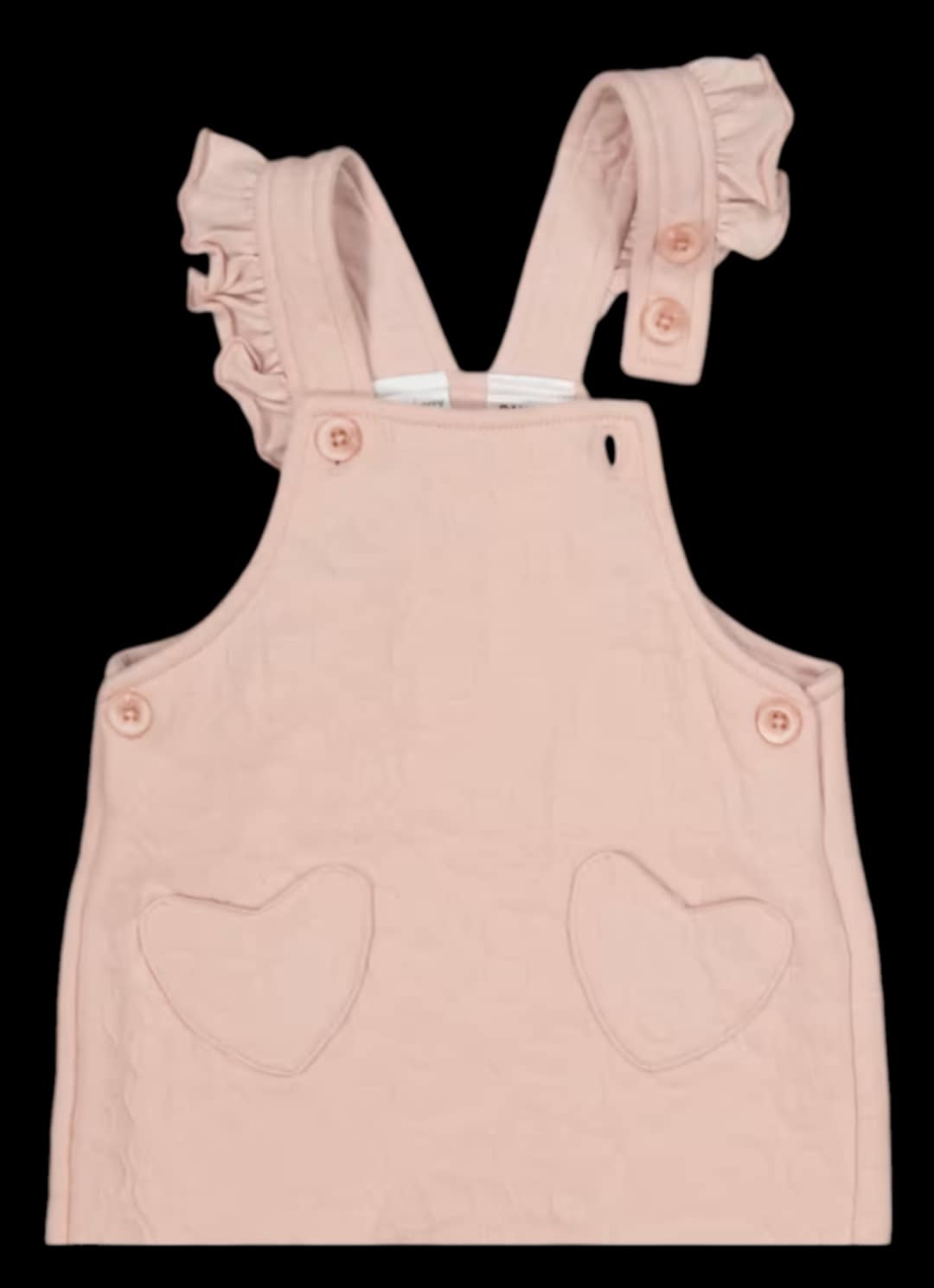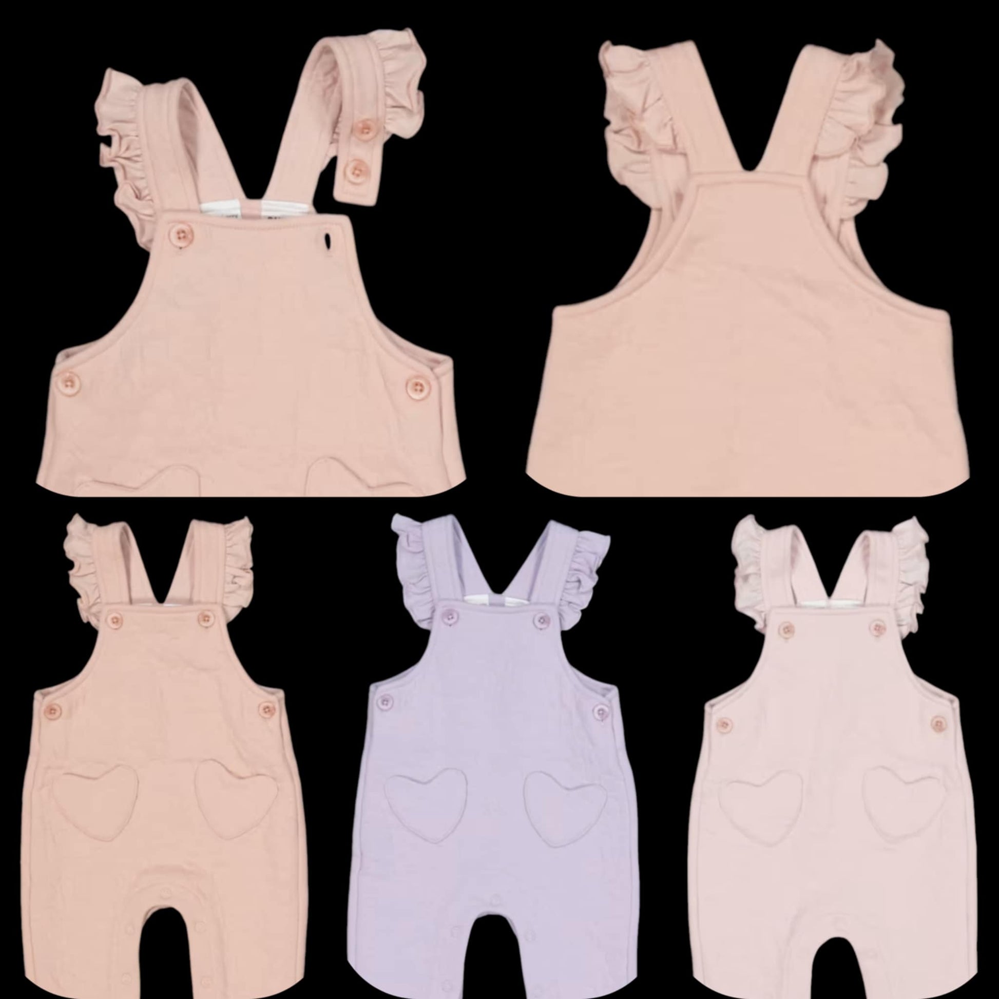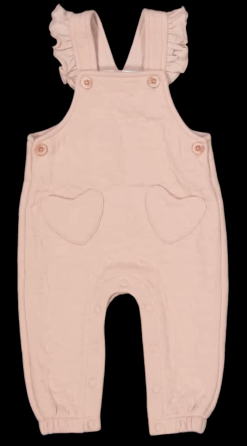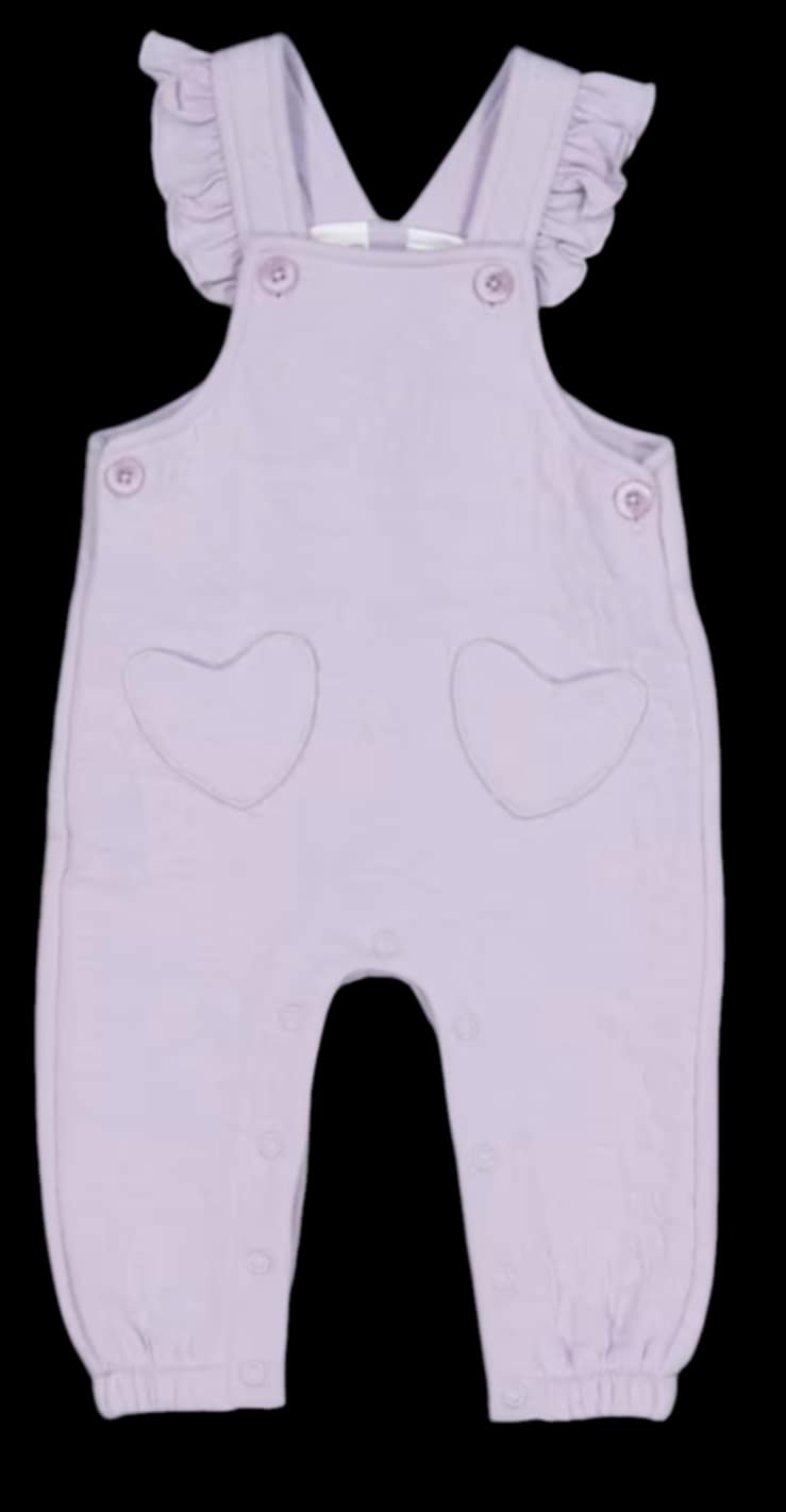 Dress your little one in these beautifully soft and stylish ruffle strap overalls, available in a range of pastel tones. With sweet heart pocket details and frilly shoulder straps, these overalls are perfect for playtime, photos, or gifting.
