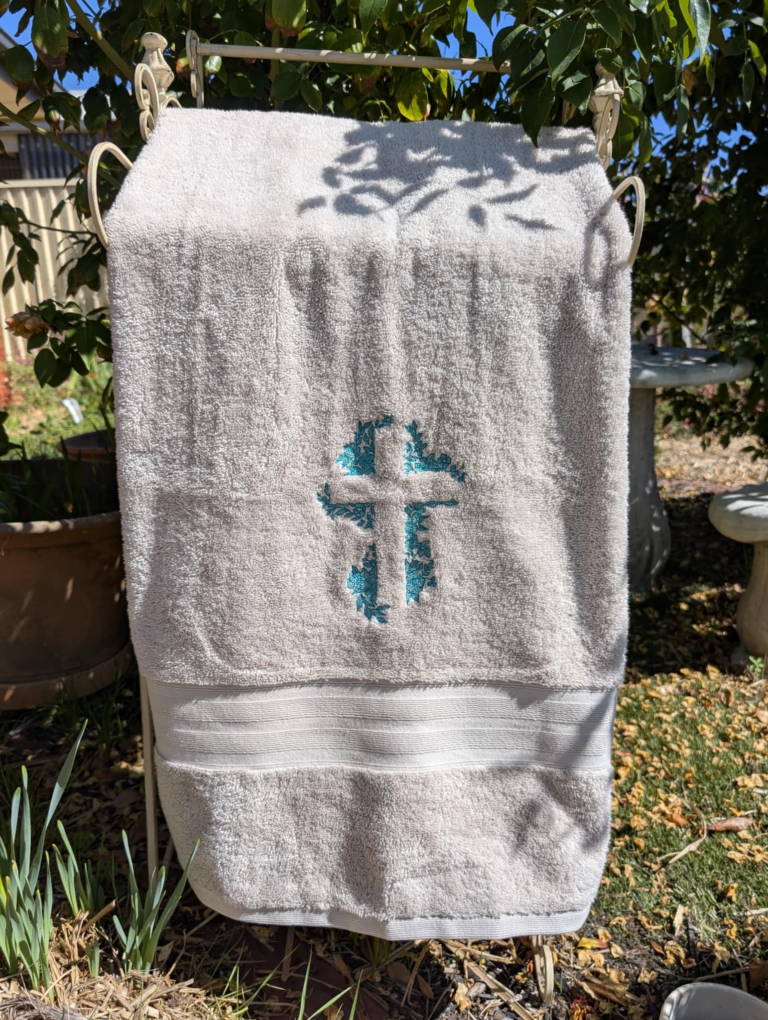Heirloom Cross Embroidered Towel β Custom Colours & Personalisation Available