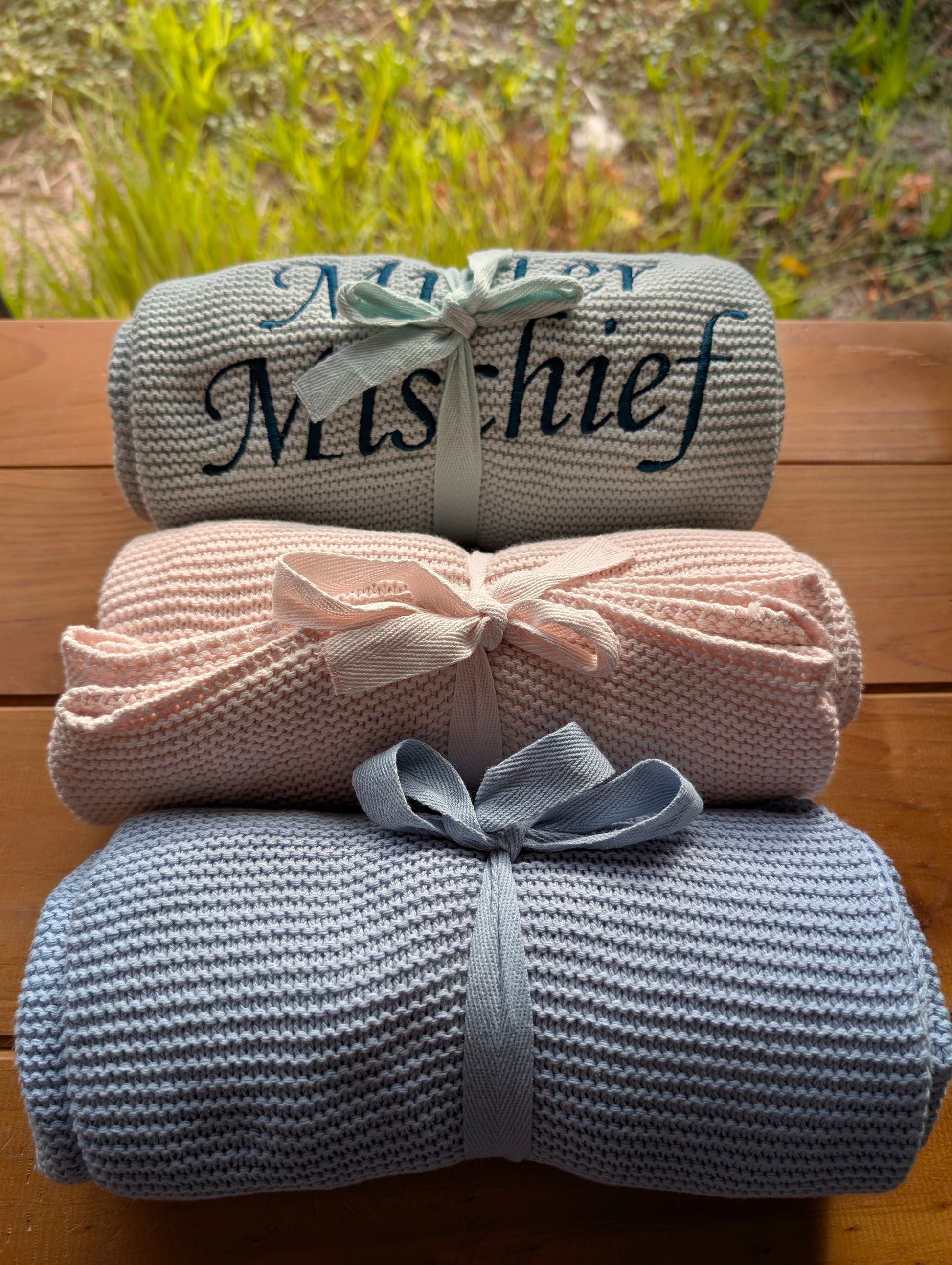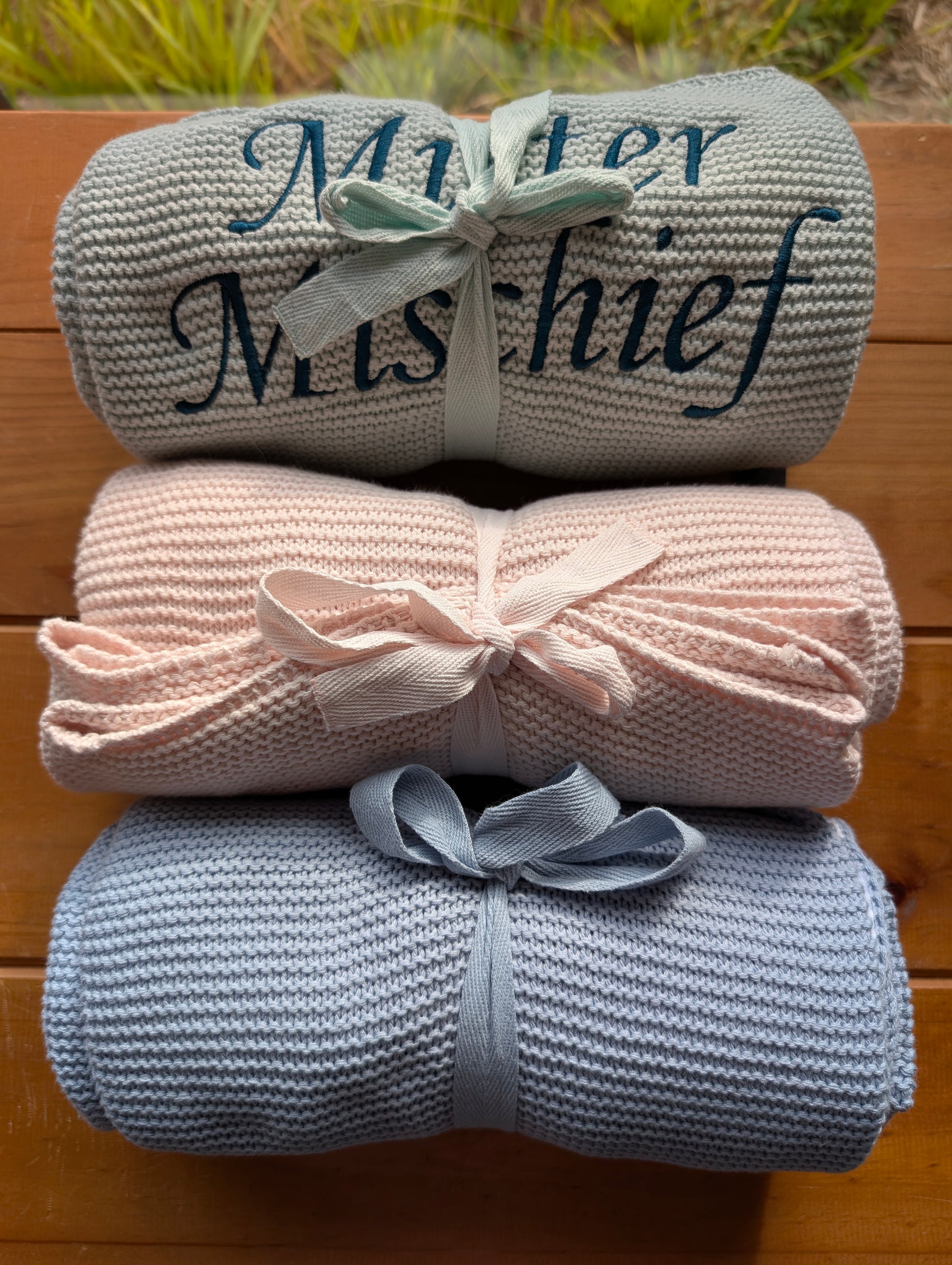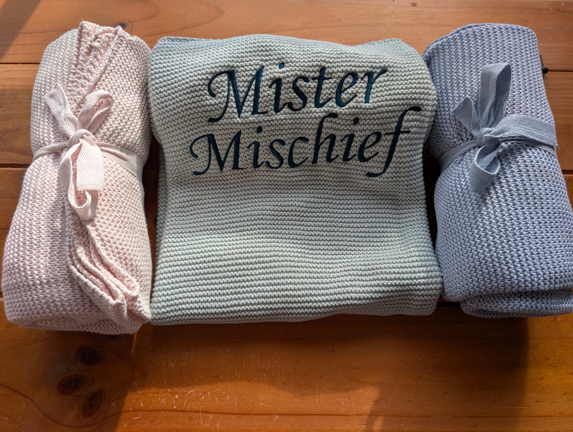 Wrap your little one in comfort and character with our luxuriously soft embroidered knit blankets. Whether you're snuggling at home, strolling in the pram, or searching for the perfect baby shower gift – this timeless keepsake delivers warmth with a personalised touch.