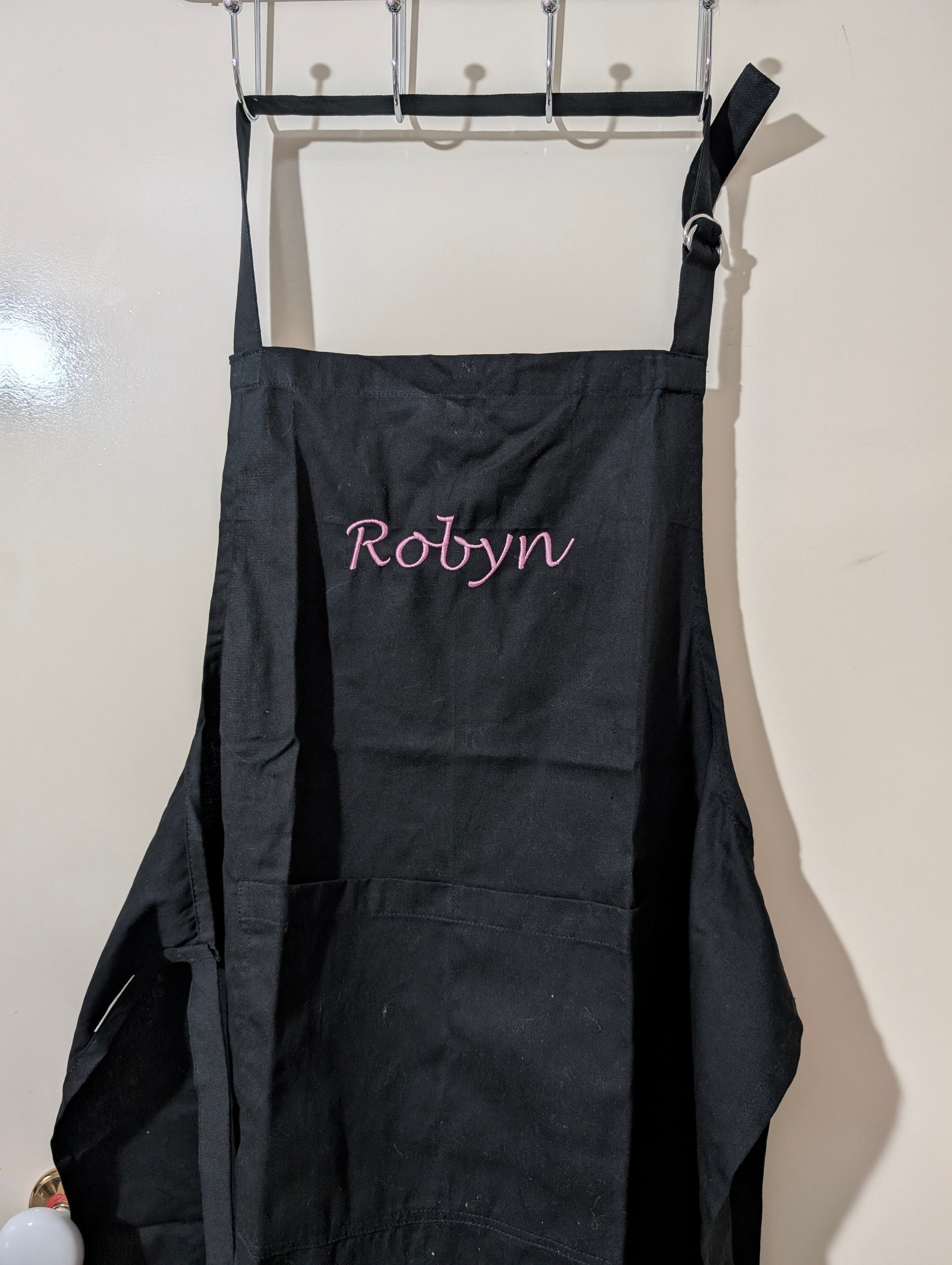 Cook, create, and entertain in style with our custom embroidered black apron with pocket – personalised with your name (or a loved one’s) in your choice of font and thread colour. Perfect for home cooks, BBQ masters, bakers, and anyone who loves spending time in the kitchen, this apron is both practical and personal.