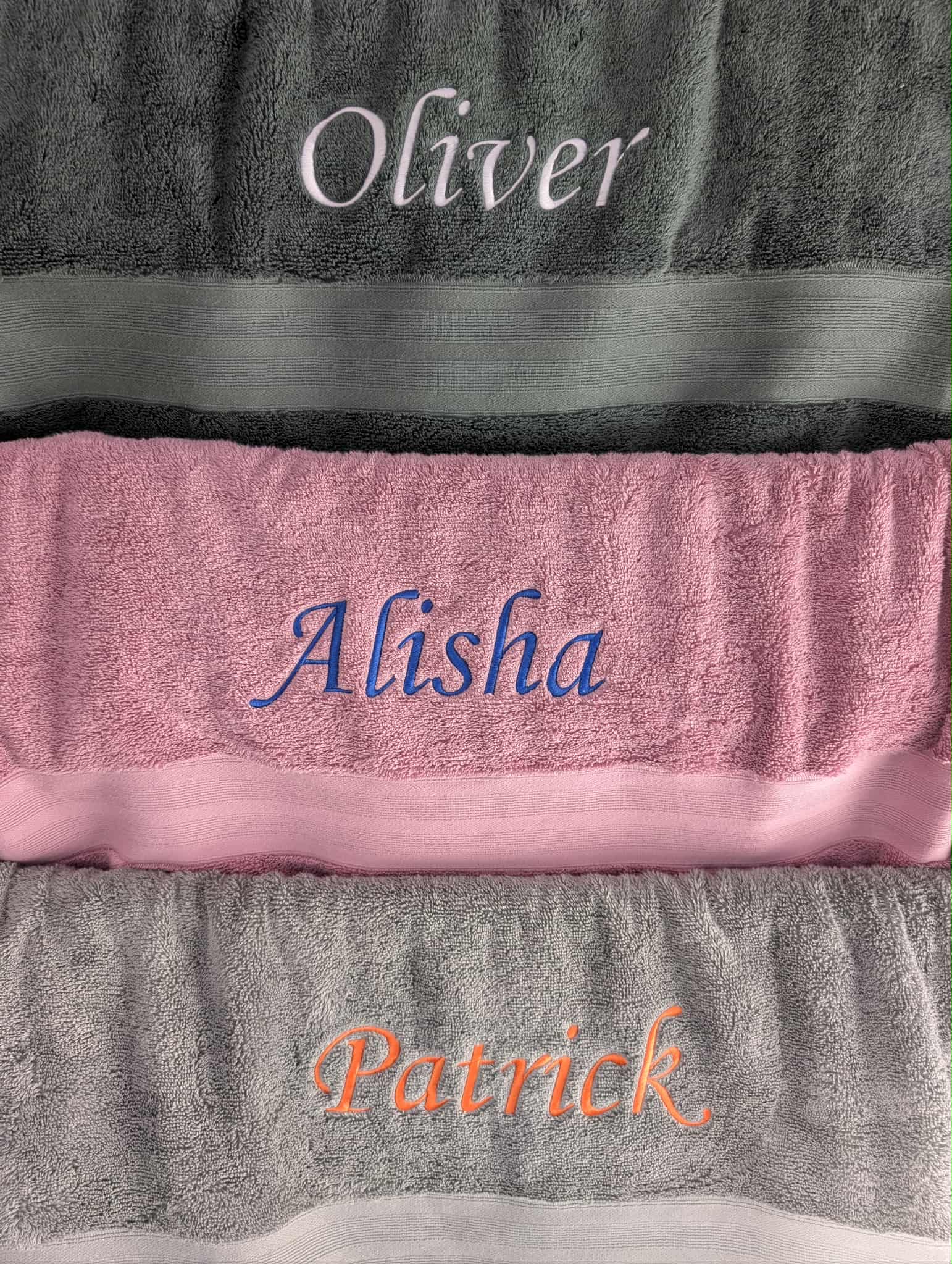 Wrap yourself or a loved one in something truly special. Our custom embroidered towel sets are made to order, just for you β with your choice of name, font, thread colour and even a small picture or icon.