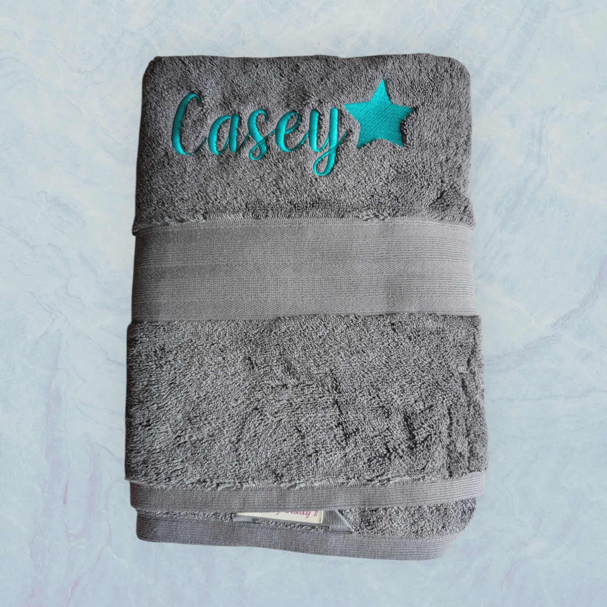Wrap yourself or a loved one in something truly special. Our custom embroidered towel sets are made to order, just for you โ with your choice of name, font, thread colour and even a small picture or icon.